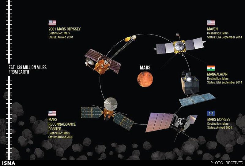 فضاپیمای ماون ناسا و کاوشگر MANGALAYAN سازمان تحقیقات فضایی هند (ISRO) سپتامبر 2014 (شهریور 93) به مدار مریخ میرسند.