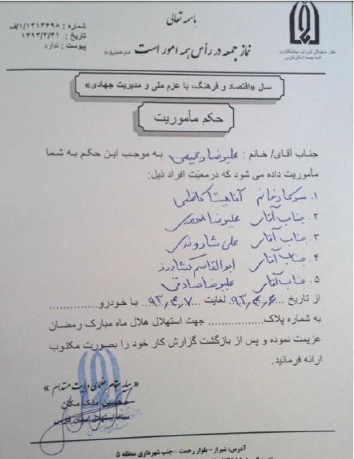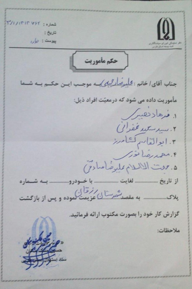– تدارکات: ابوالقاسم کشاورز- روحانی: حجت الاسلام علیرضا صادقی